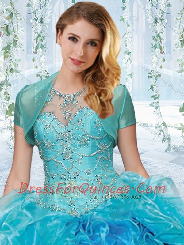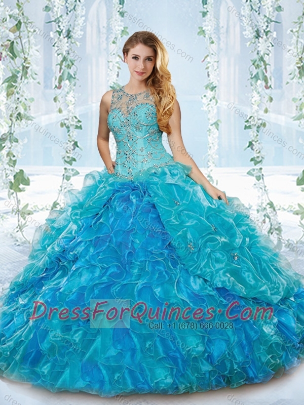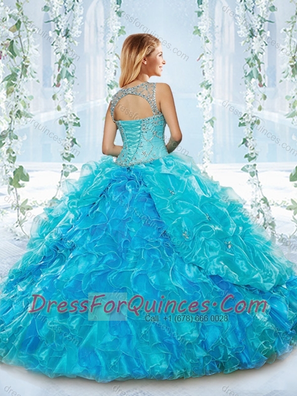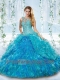 Modern See Through Blue Detachable Sweet 16 Dress with Beading and Ruffles