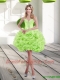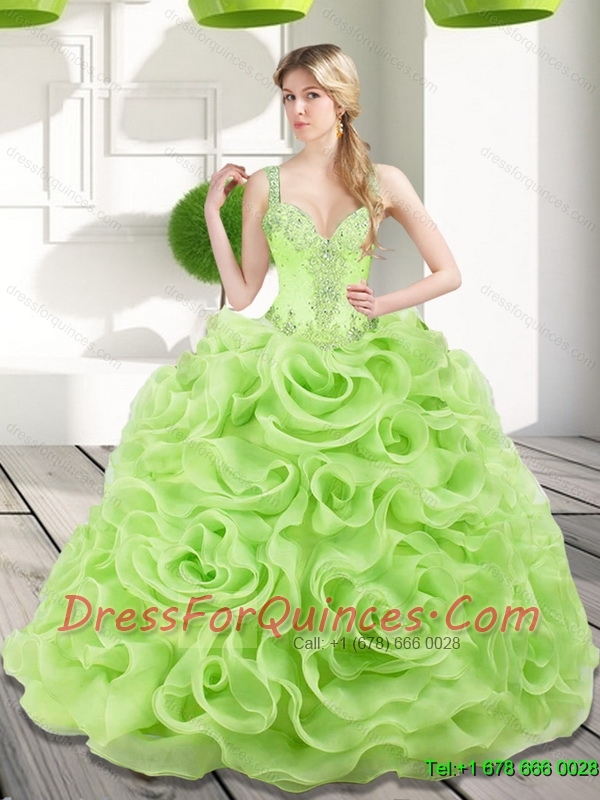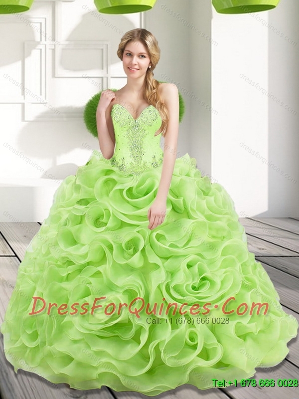 Modest Spring Green 2015 Sweet 15 Dresses with Beading and Rolling Flowers