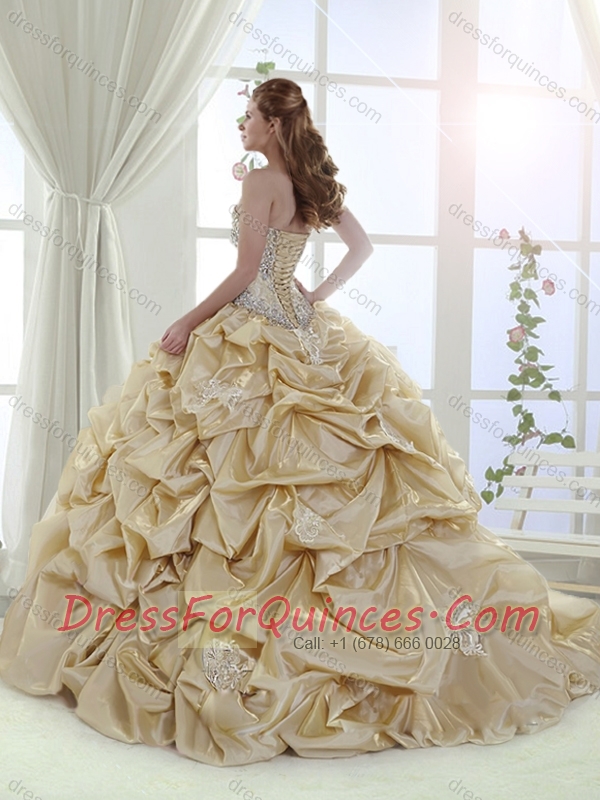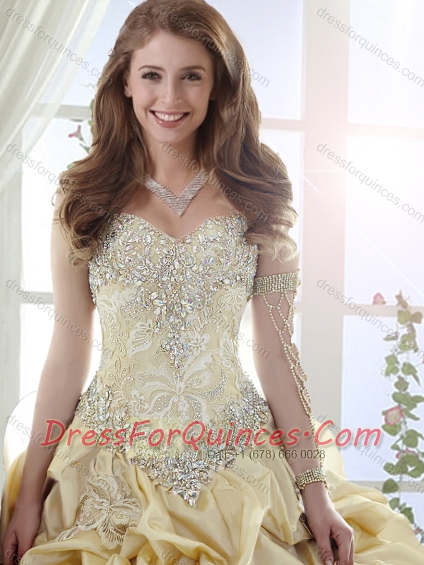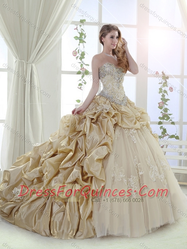 New Style Applique and Bubble Champagne Quinceanera Gown in Tulle and Taffeta