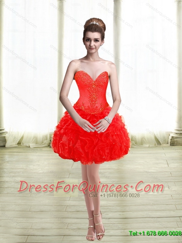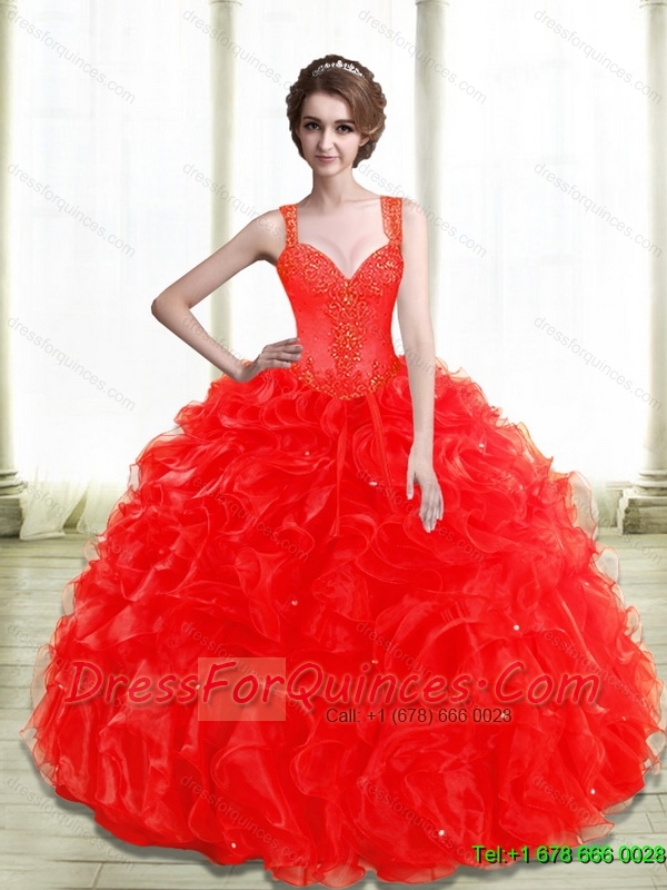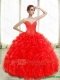 New Style Appliques and Ruffles Red Sweet 15 Dress for 2015