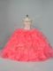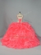 Off The Shoulder Sleeveless Lace Up Quinceanera Dresses Watermelon Red Organza