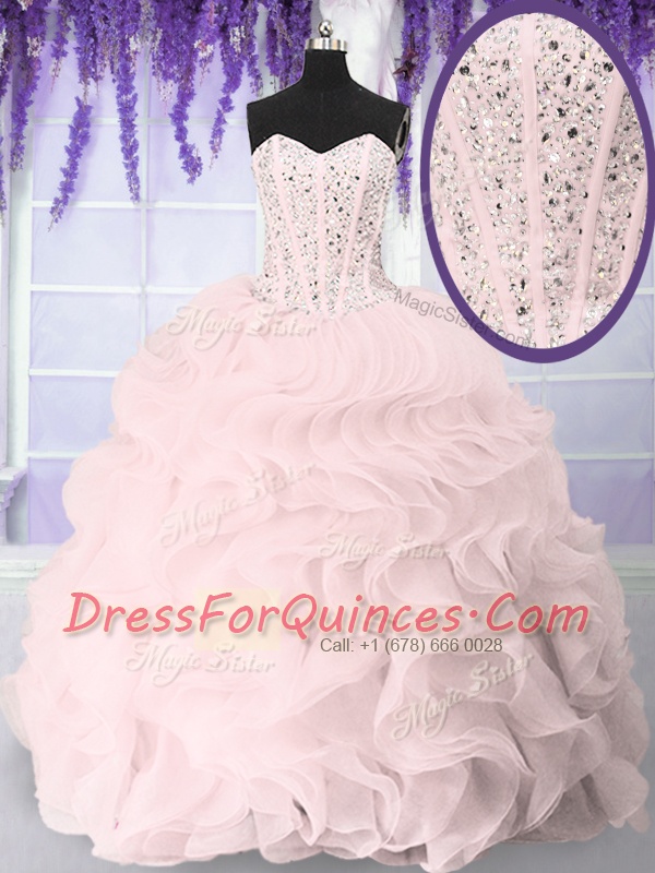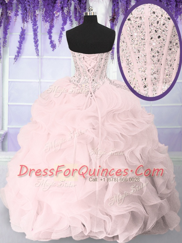 Organza Sleeveless Floor Length Sweet 16 Dresses and Beading and Ruffles