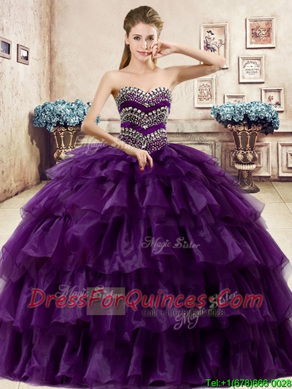 Perfect Big Puffy Organza Quinceanera Dress with Beading and Ruffled Layers