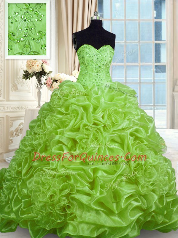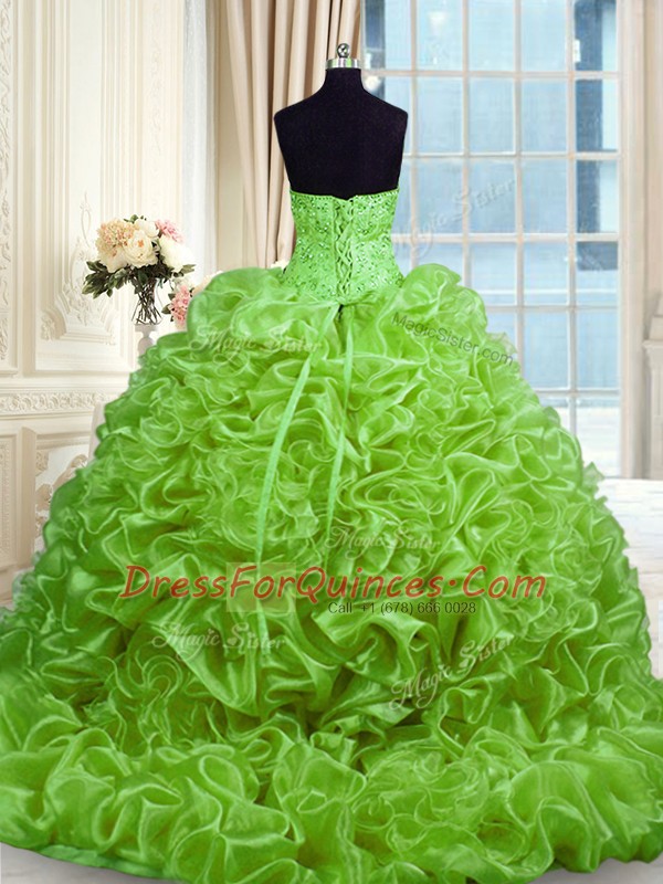 Pick Ups Sleeveless Organza Sweep Train Lace Up Sweet 16 Dresses for Military Ball and Sweet 16 and Quinceanera