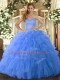 Popular Blue Lace Up Sweetheart Ruffles Ball Gown Prom Dress Tulle Sleeveless