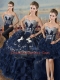 Popular Navy Blue Ball Gowns Satin and Organza Sweetheart Sleeveless Embroidery and Ruffles Lace Up Vestidos de Quinceanera