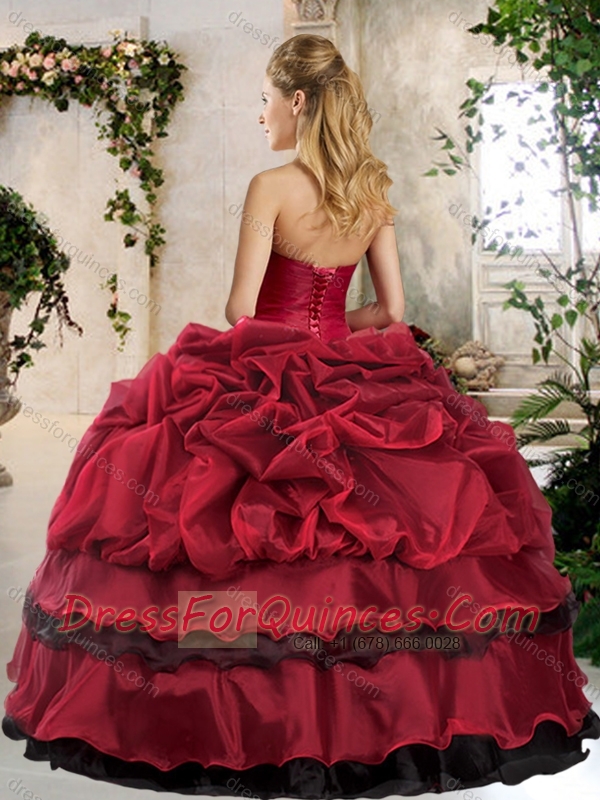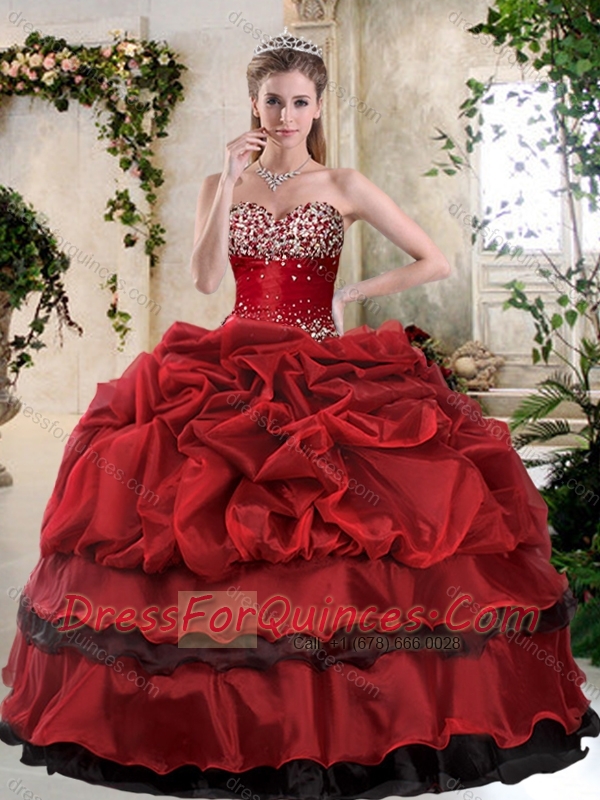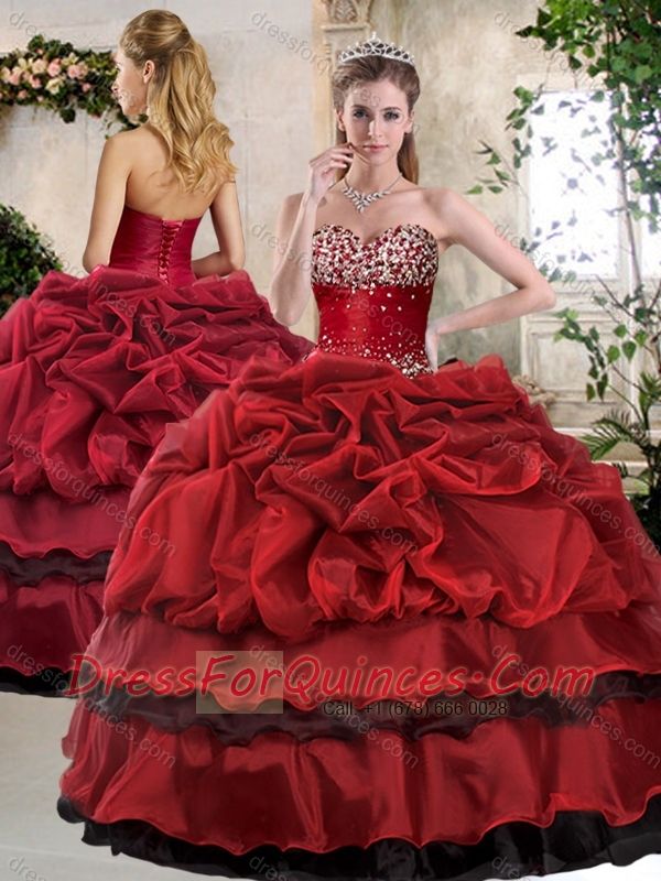 Romantic Ball Gown Beading and Pick Ups Sweet 16 Gowns in Wine Red