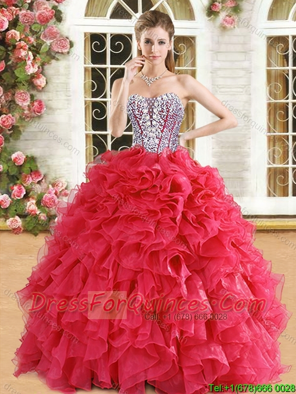 Romantic Beaded and Ruffled Organza Quinceanera Dress in Red