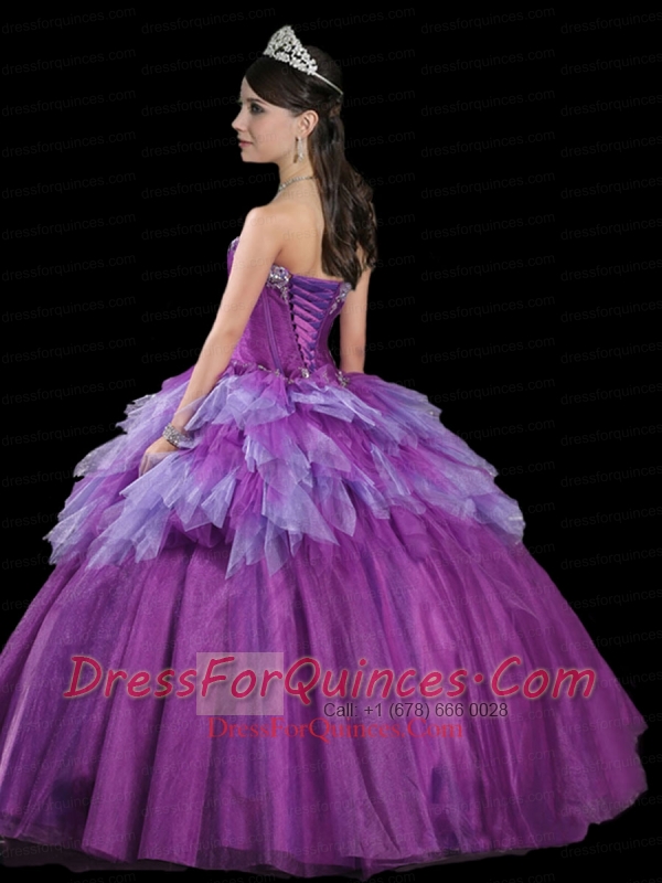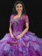 Romantic Purple Tulle Ruffles and Beading Quinceanera Dress