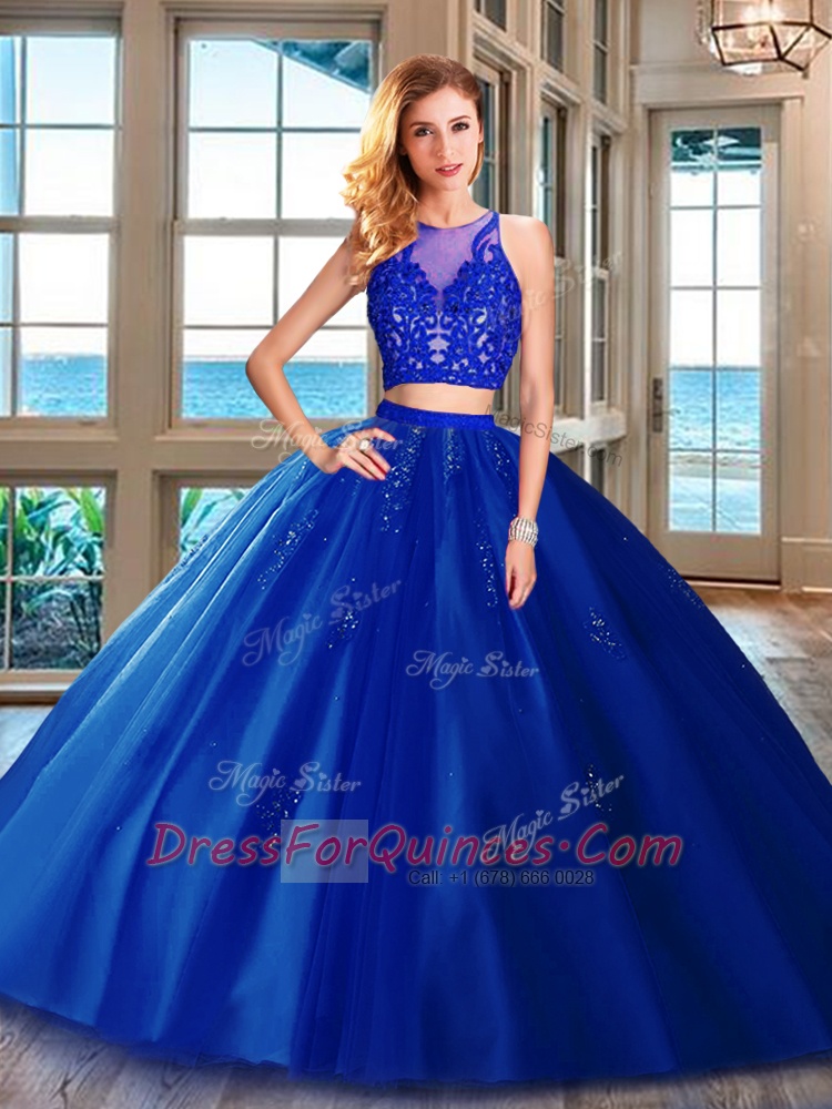 Royal Blue Zipper Scoop Appliques Quinceanera Dress Tulle Sleeveless