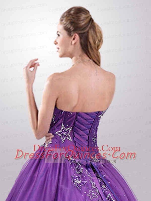 Simple Princess Sweetheart Appliqued Quinceanera Dresses in Purple