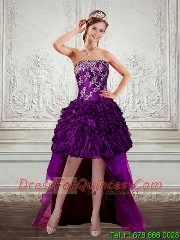 Strapless Ball Gown Quinceanera Dress with Embroidery and Ruffles