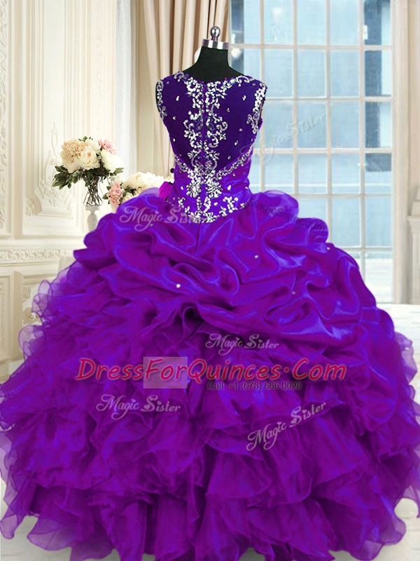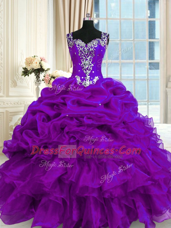 Straps Sleeveless Organza Sweet 16 Dresses Beading and Ruffles and Pick Ups Lace Up