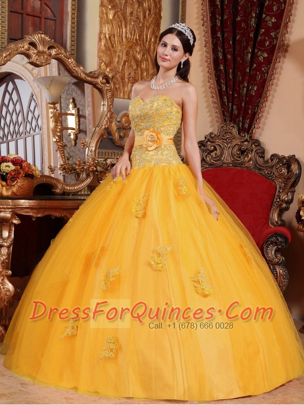 Sweet 16 Dresses In Gold Ball Gown Sweetheart Floor-length With Tulle Appliques