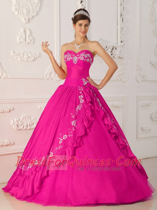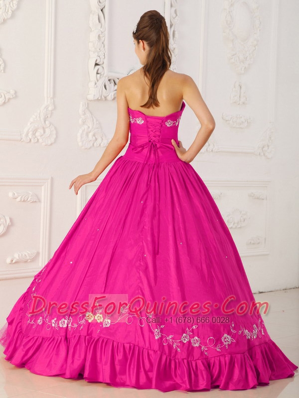 Sweet 16 Dresses In Hot Pink A-Line / Princess Sweetheart Floor-length With Embroidery and Beading