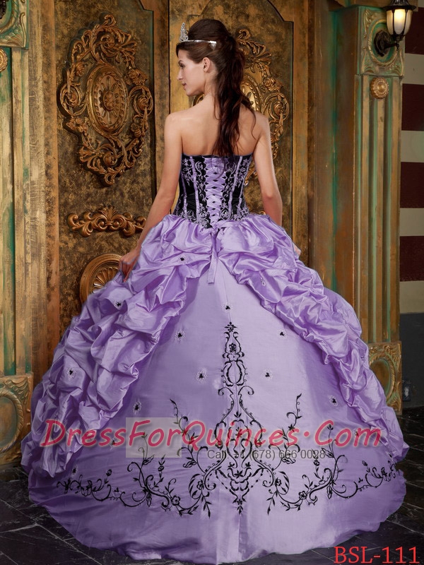 Sweet 16 Dresses In Lavender Ball Gown Strapless Floor-length With Embroidery Taffeta