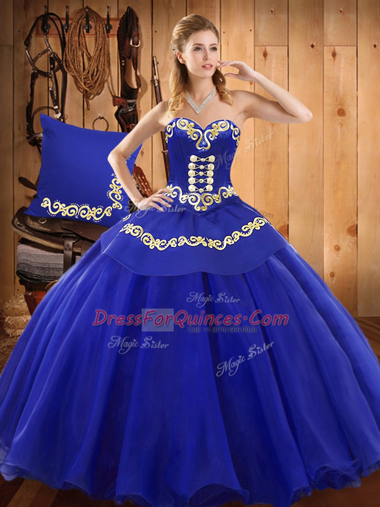 Sweetheart Sleeveless 15th Birthday Dress Floor Length Ruffles Blue Tulle