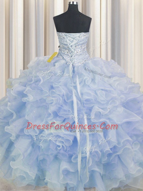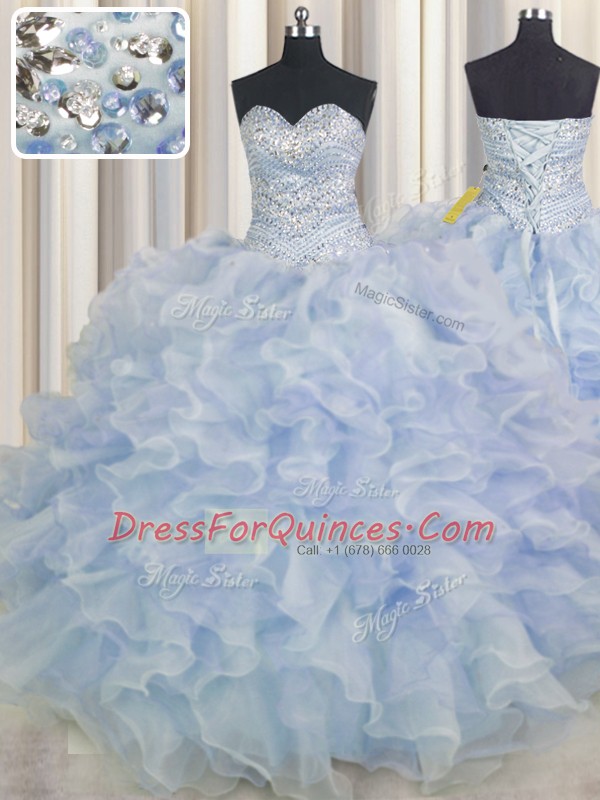 Sweetheart Sleeveless Lace Up Sweet 16 Dresses Light Blue Organza