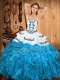Teal Ball Gowns Satin and Organza Strapless Sleeveless Embroidery and Ruffles Floor Length Lace Up Quince Ball Gowns