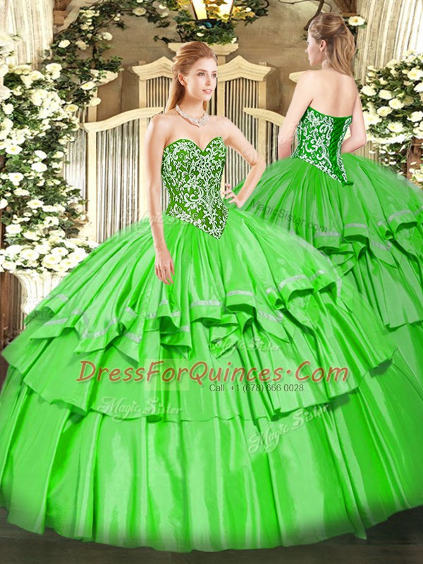 Trendy Ball Gowns Beading and Ruffled Layers Quinceanera Gowns Lace Up Organza and Taffeta Sleeveless Floor Length