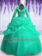 Turquoise Zipper Quinceanera Gowns Sequins and Pick Ups Long Sleeves Floor Length