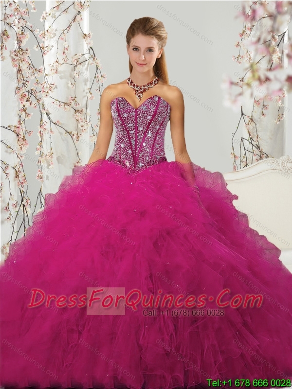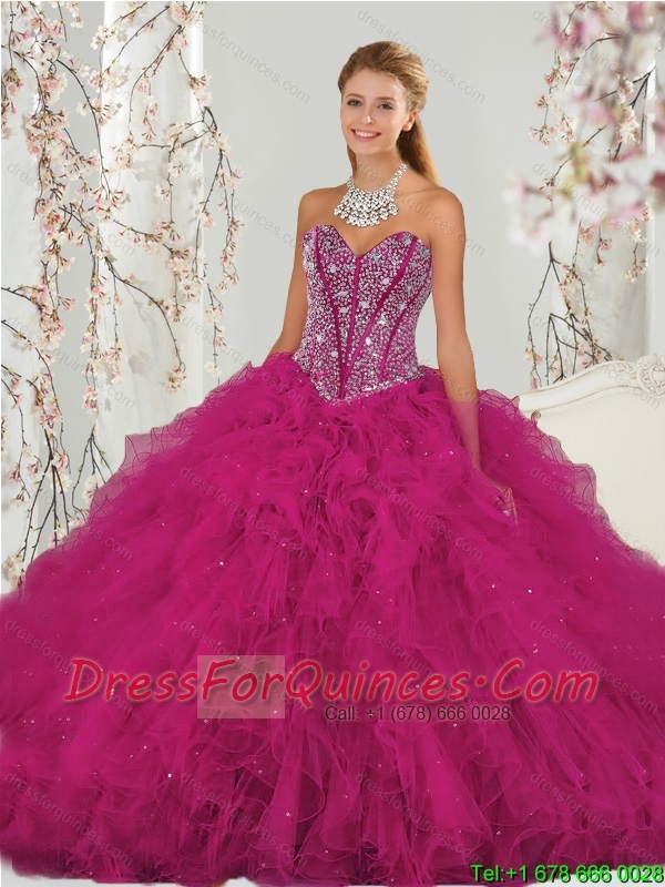 Unique and Detachable Beading and Ruffles Dresses for Quince in Red for 2015