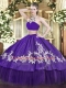 Unique Purple Tulle Backless High-neck Sleeveless Floor Length Quinceanera Dresses Beading and Appliques