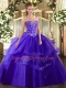 Unique Purple Tulle Lace Up Sweet 16 Dress Sleeveless Floor Length Embroidery and Ruffled Layers