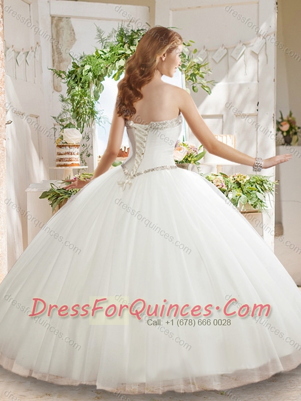 White Ball Gown Sweetheart Beaded Organza Quinceanera Dress in Tulle
