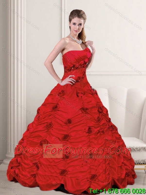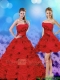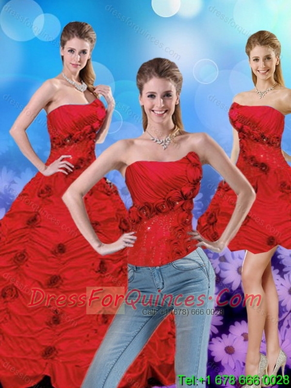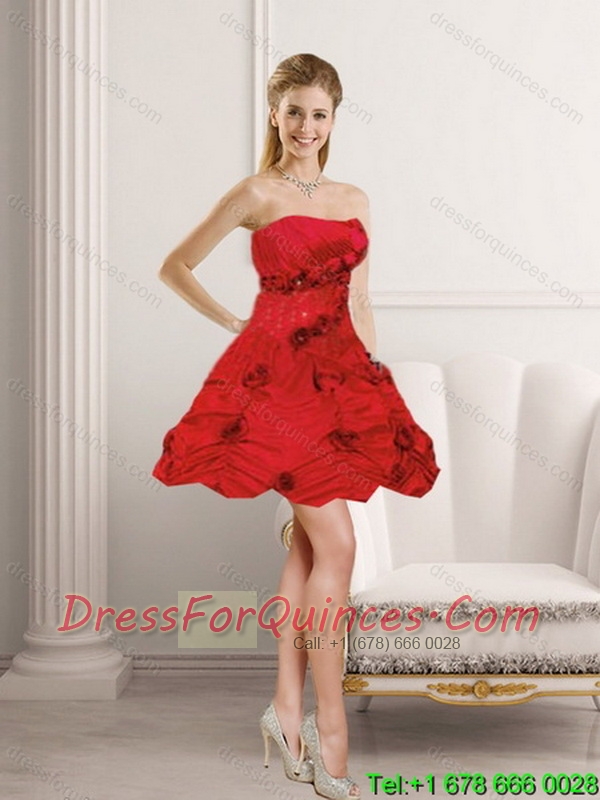 Wonderful Red Strapless Quinceanera Dresses with Beading and Hand Made Flower