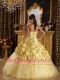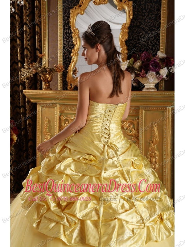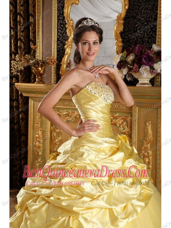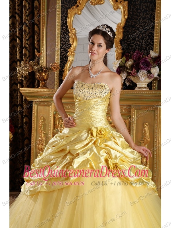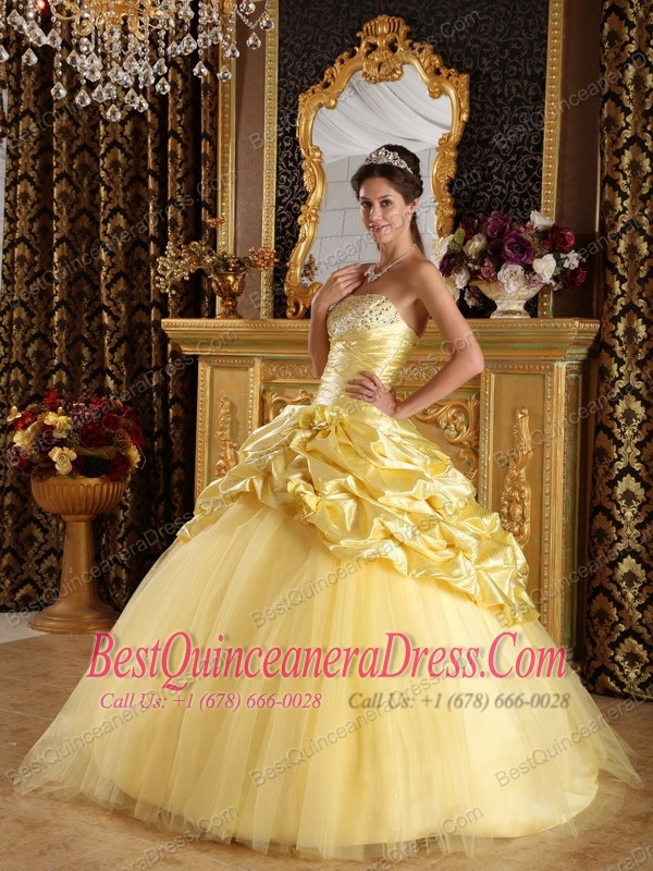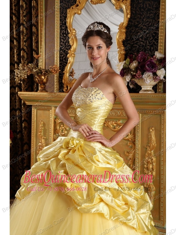 Yellow Ball Gown Strapless Floor-length Taffeta and Tulle Beading Sweet 16 Dress