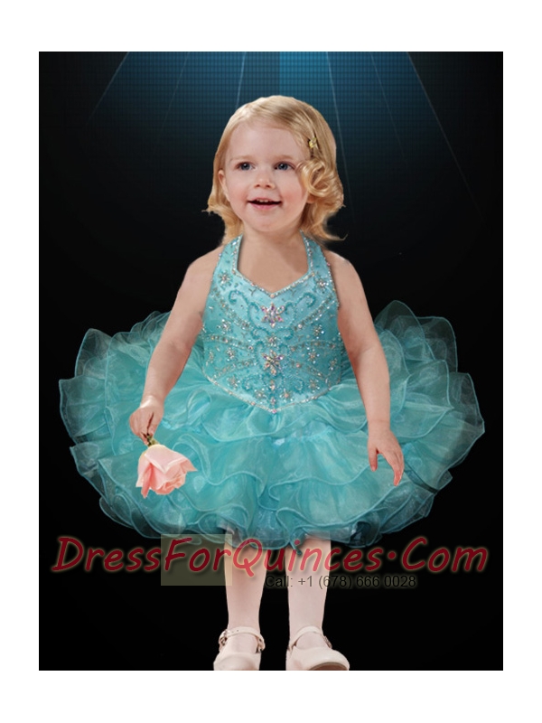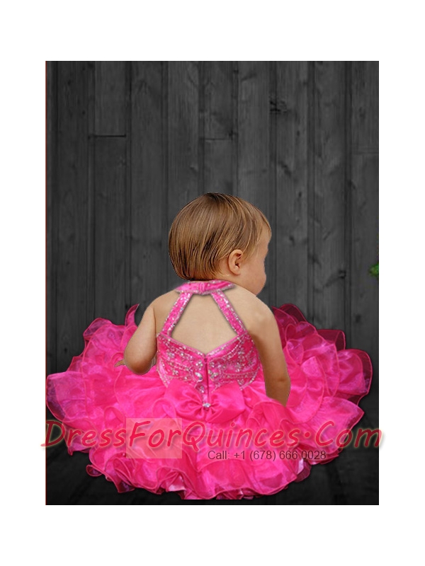 2014 Beautiful Hot Pink Halter Little Girl Dress with Beading and Ruffles