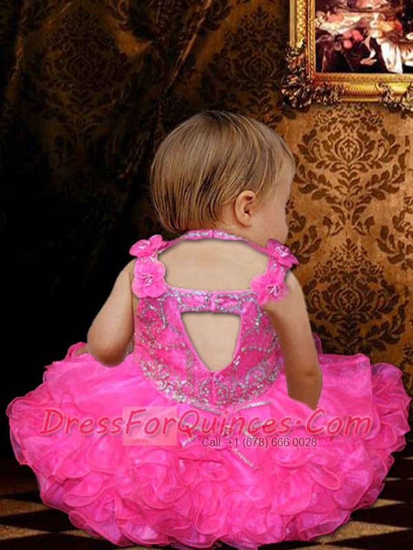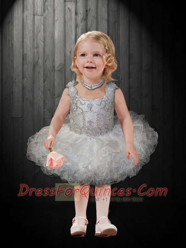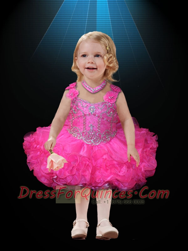 2014 Straps Backless Beading and Ruffles Little Girl Dress with Hand Made Flowers