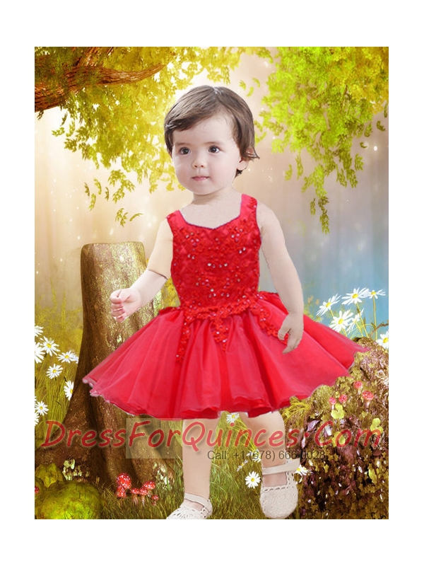Cute A-Line Straps Mini-length Beading Appliques Light Blue Little Girl Dresses