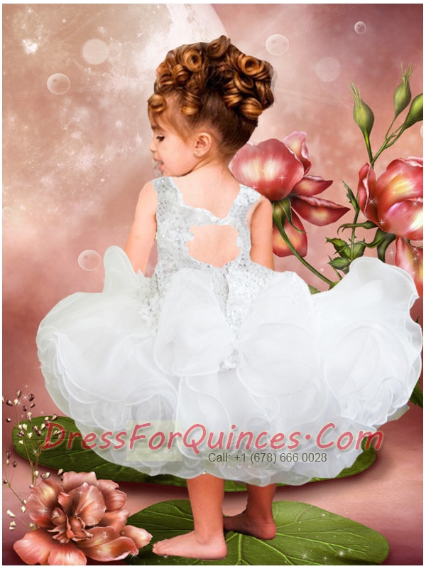Elegant Ball Gown Straps White Little Girl Dresses With Beading Ruffles