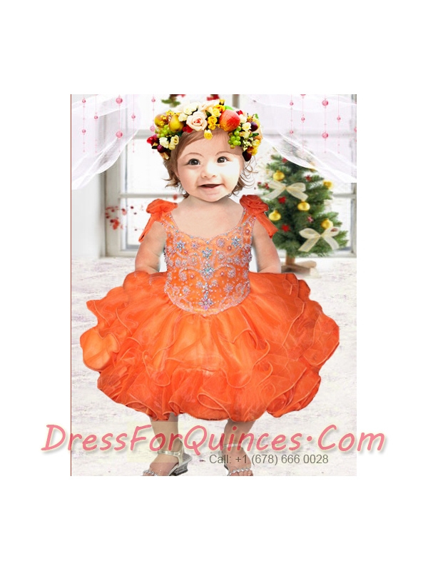 Orange Ball Gown Straps Knee-length Little Girl Dress with Beading