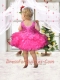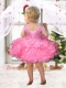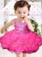Rose Pink Scoop Beading and Ruffles Little Girl Dress with Lace-up