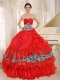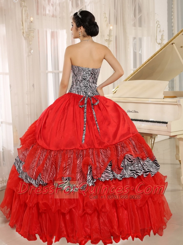 2014 Beautiful Red Sweetheart Simple Zebra and Beading Wholesale Ruffles Quinceanera Dress
