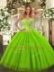 Affordable Ball Gowns Beading 15th Birthday Dress Lace Up Tulle and Sequined Sleeveless Floor Length