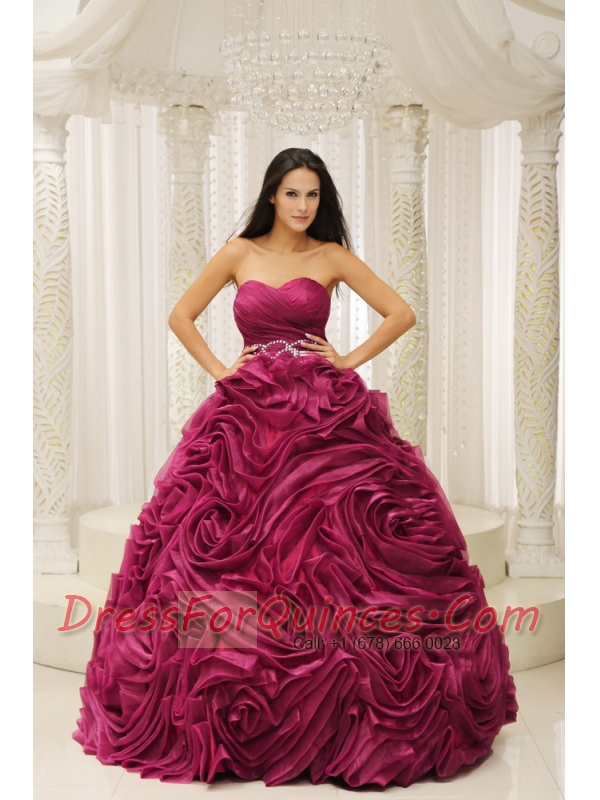 A-line Red Sweetheart Beaded Wasit Lace-up Hand Made Flower Organza Quinceanera Dress
