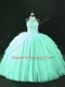 Apple Green Lace Up Halter Top Beading Ball Gown Prom Dress Tulle Sleeveless