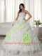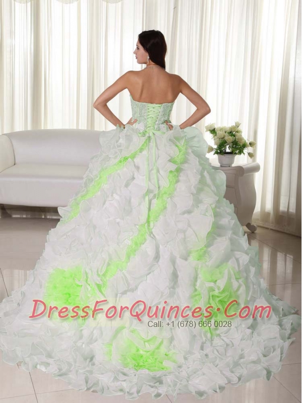 Appliques And Beading Sweet 16 Court Train White Ball Gown Sweetheart Organza Quinceanera Dress