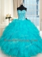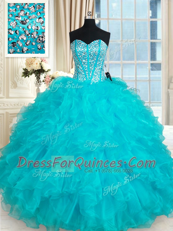 Aqua Blue Lace Up Quinceanera Dresses Beading and Ruffles Sleeveless Floor Length