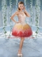 Artistic Halter Top Sleeveless Floor Length Beading and Ruffles Lace Up Quinceanera Gown with Multi-color