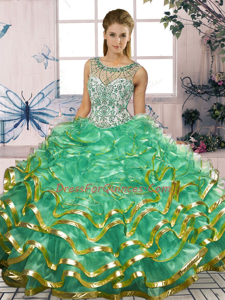 Ball Gowns Quinceanera Gown Turquoise Scoop Organza Sleeveless Floor Length Lace Up