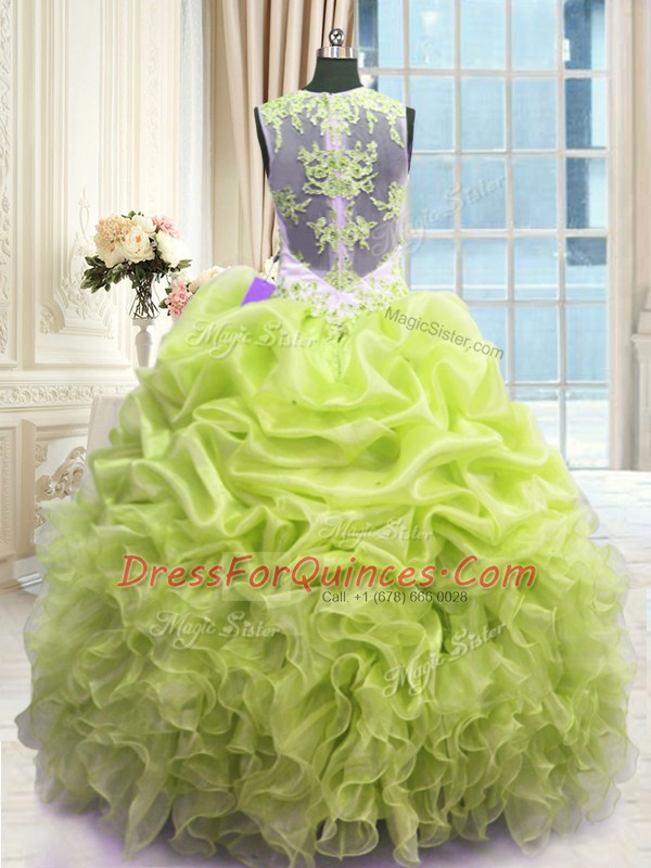 Ball Gowns Quinceanera Gowns Yellow Green Scoop Organza Sleeveless Floor Length Zipper