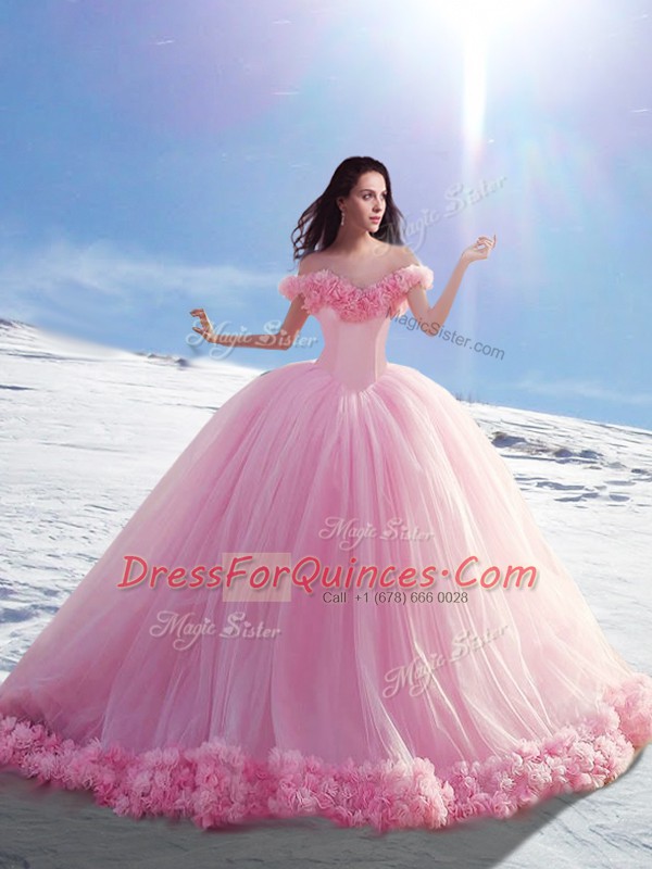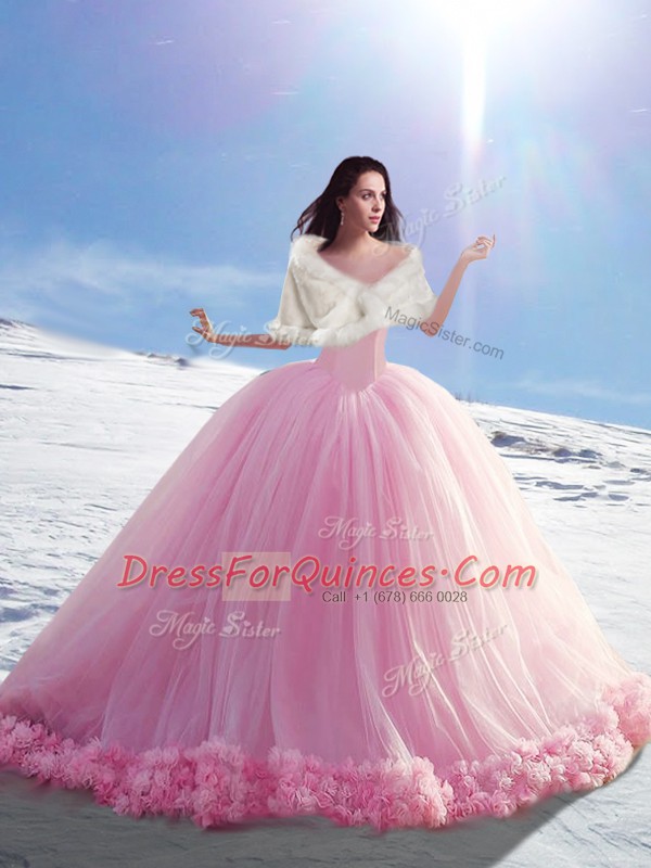 Ball Gowns Sleeveless Baby Pink Quinceanera Dresses Brush Train Lace Up