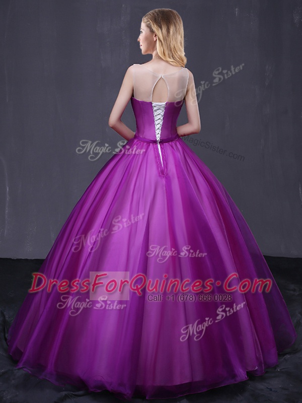 Ball Gowns Sweet 16 Dresses Purple Scoop Tulle Sleeveless Floor Length Lace Up