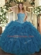 Ball Gowns Vestidos de Quinceanera Teal Sweetheart Tulle Sleeveless Floor Length Lace Up