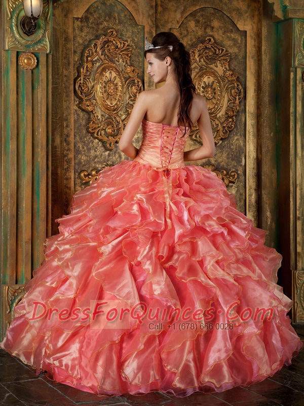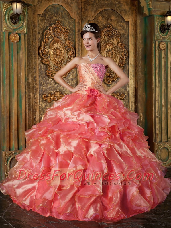 Beading and Ruffles 2014 Spring Quinceanera Dresses Coral Red Lace-up